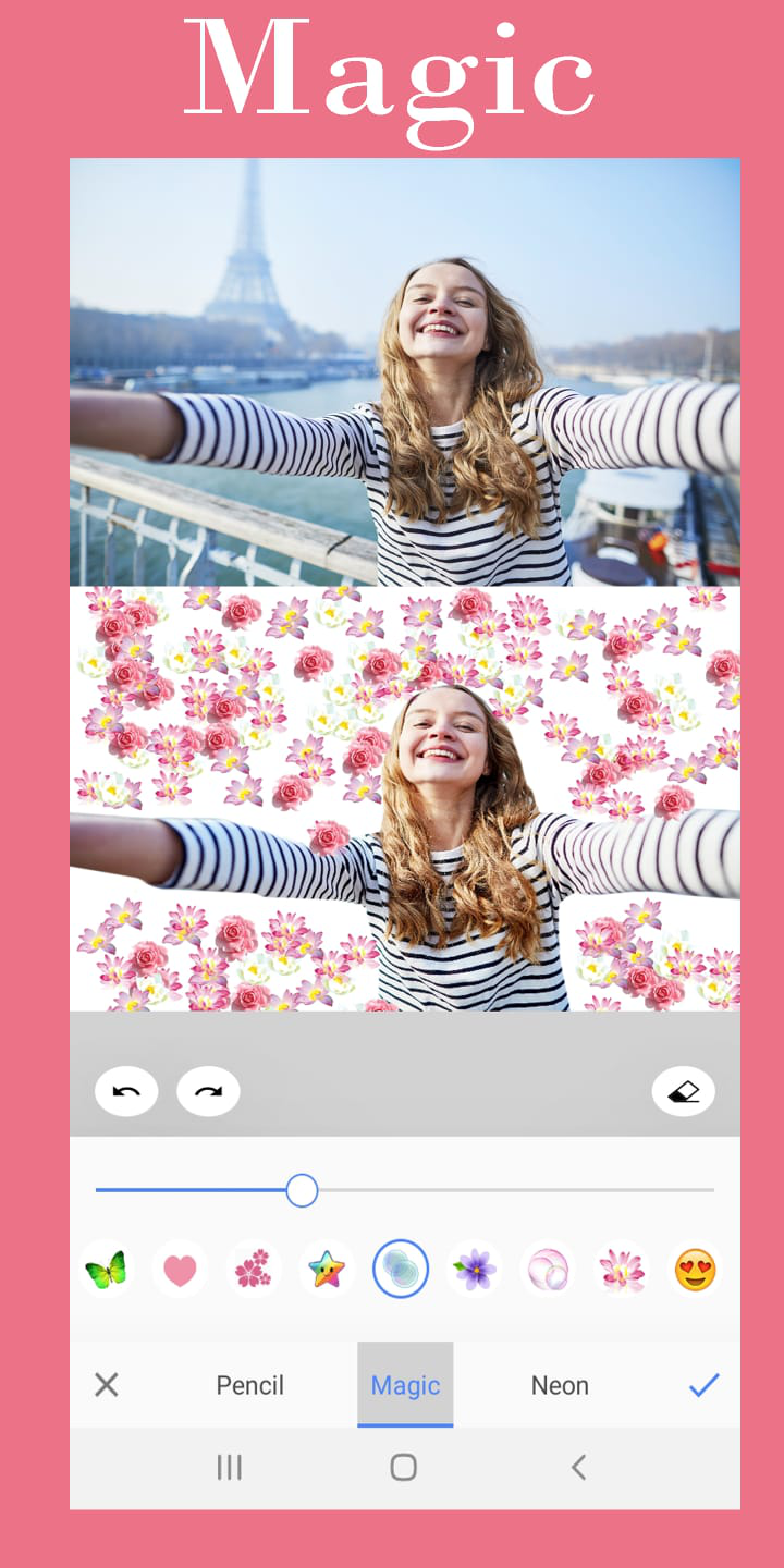 Not happy with how your body or face look in a pic? Nothing to worry about. We have got you covered with waist, hips and face adjustments until you’re looking absolutely perfect in every photo you take.