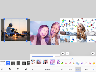 Perfect pic layouts and borders are at your fingertips. Pick the pictures from your digital photo album and frame them in marvellous layouts. Play around with cool photo effects and camera filters until you are perfectly happy.