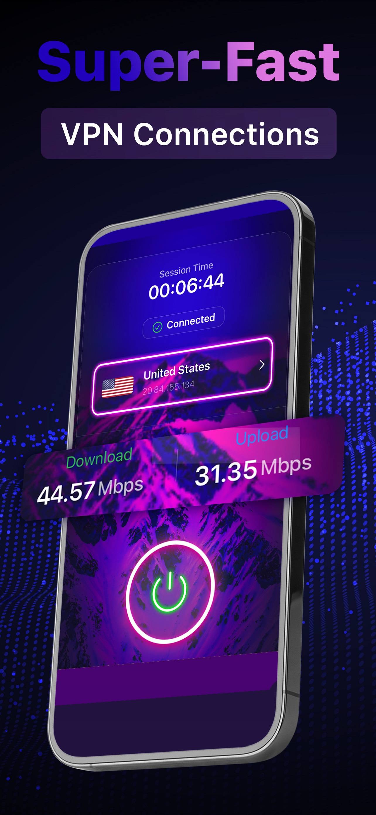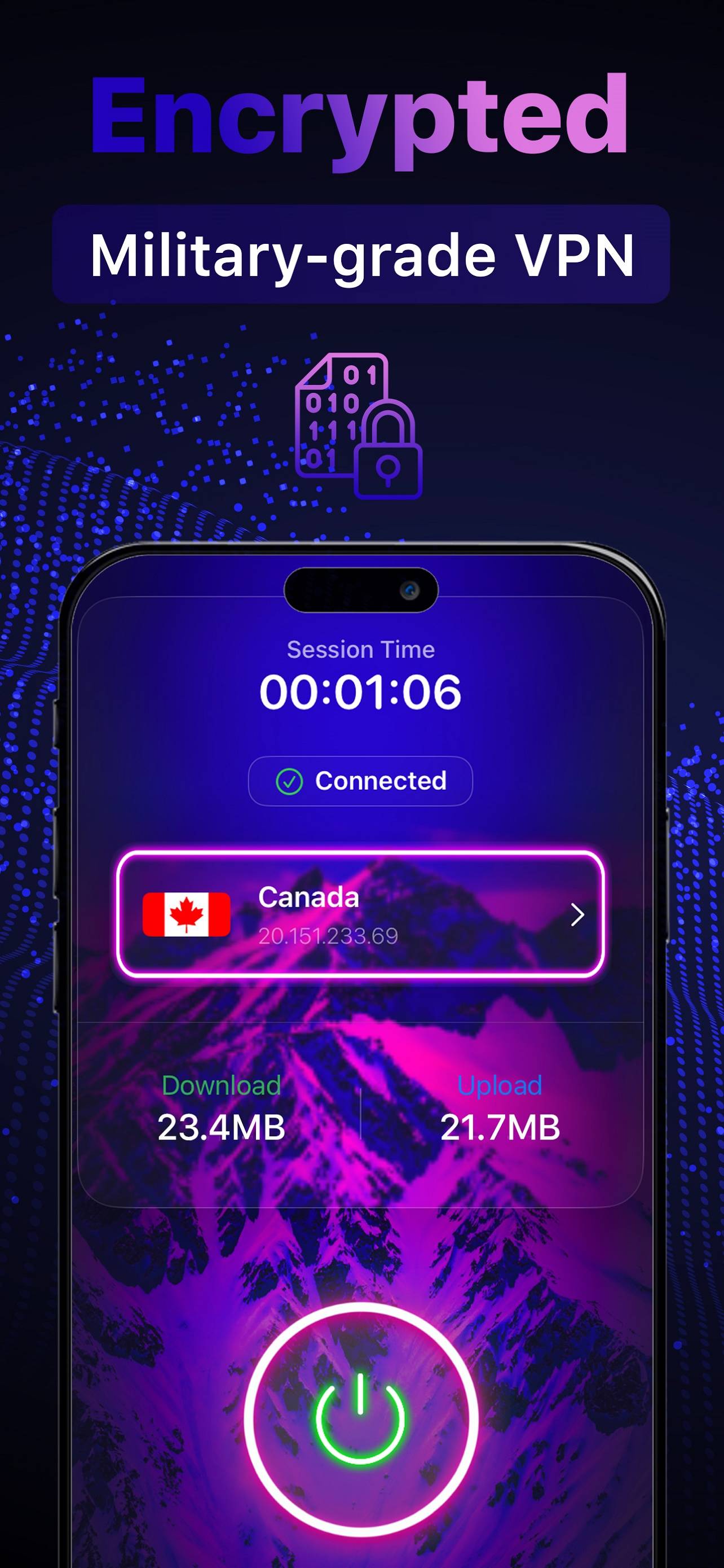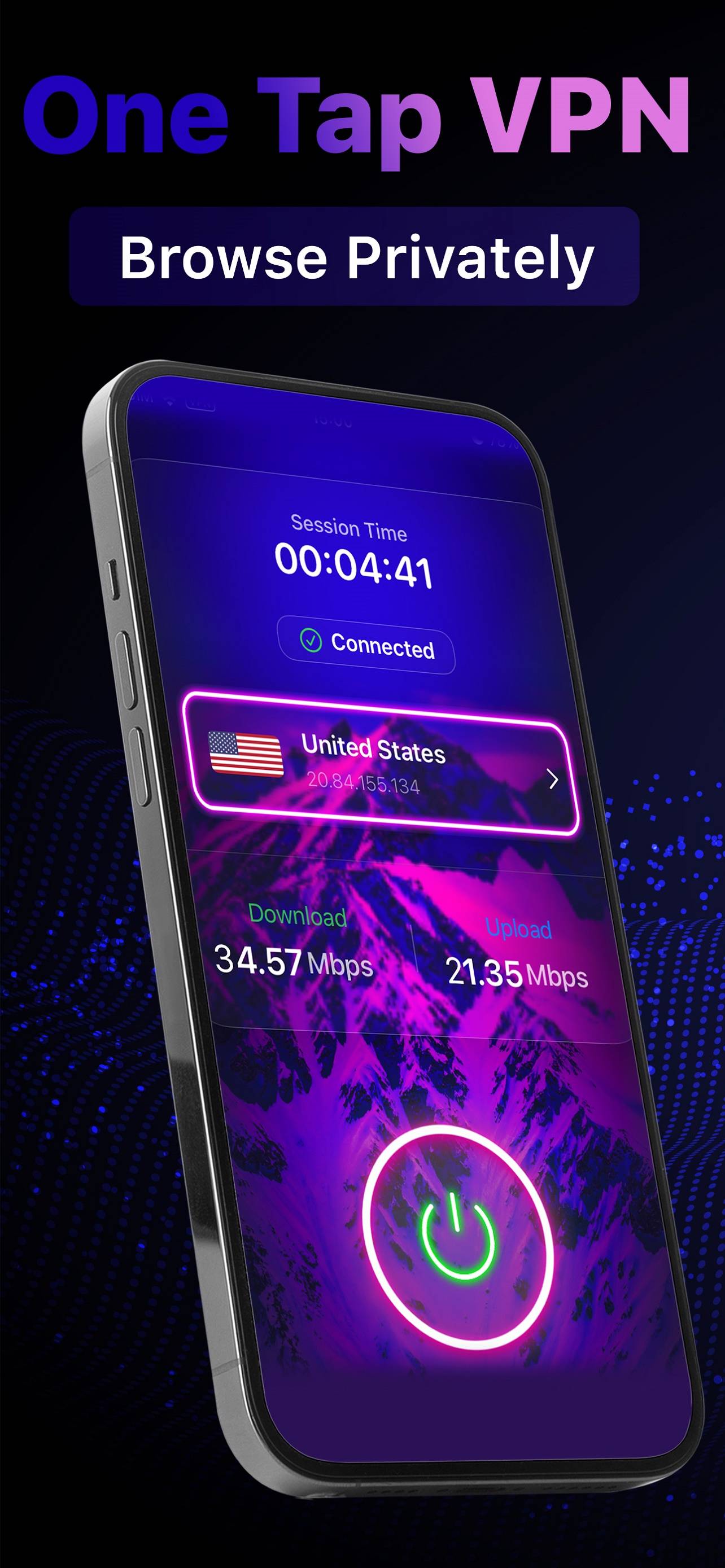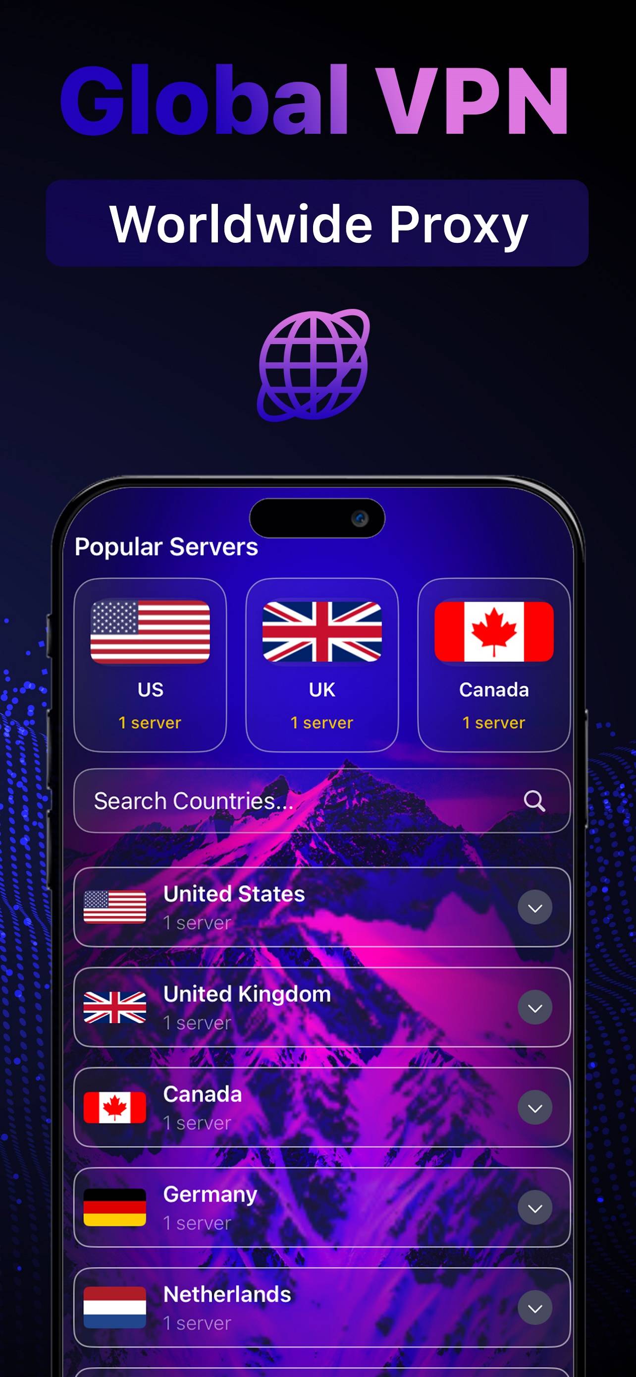 Connect instantly to a secure VPN server with a single tap. No complex settings, no delays – just fast and reliable protection wherever you are.